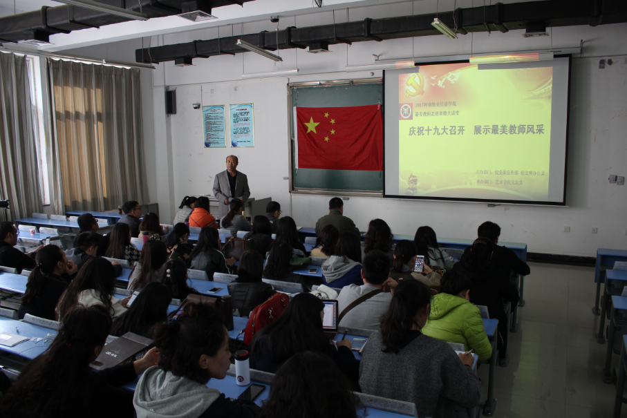为进一步弘扬立德树人、爱岗敬业、为人师表、严谨笃学的高尚师德,营造尊师重教的浓厚氛围,发挥学校“最美教师”的示范引领作用,用身边的先进典型激励鼓舞和教育身边人,为庆祝党的十九大胜利召开营造良好的宣传舆论氛围,根据学校庆祝党的十九大召开总体宣传活动安排要求,beat365英国官网网站于11月2日下午,在龙子湖校区1号教学楼304举行了“庆祝十九大召开 展示最美教师风采”--“最美教师”走进“道德讲堂”活动。会议活动由院党总支书记王在钦主持。