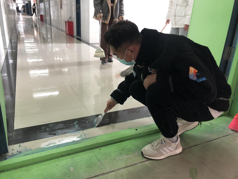 3月24日,志愿者服务队拿着扫把、拖把还有坯灰铲等劳动工具,将教学楼一楼二楼地面、楼梯扶手、门窗等区域的卫生死角进行了彻底的清除。同学们热情高涨,充分展现了不怕脏、不怕累、不怕苦的良好精神风貌。不仅如此,同学们还仔细地用小铲子清理地板上留下的污渍。经过大家共同努力,教学楼焕然一新,重新恢复了往日的模样。