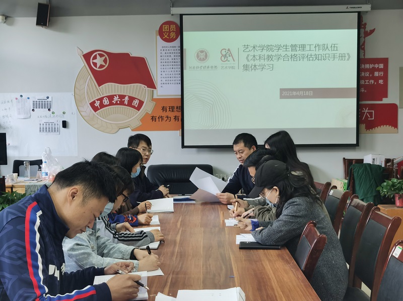 为广泛宣传本科教学工作合格评估,普及本科教学工作合格评估的基本知识,号召全体辅导员积极参与到学校迎接合格评估工作中来,beat365英国官网网站学生管理工作队伍在院党委副书记王友峰的带领下,于4月18日上午在1号楼417办公室对《本科教学工作合格评估知识手册》进行了集体学习。