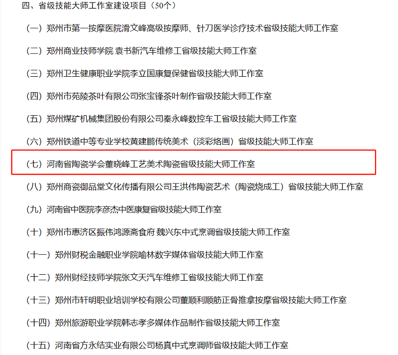 据悉,“董晓峰工艺美术陶瓷技能大师工作室”成功获批河南省人力资源和社会保障厅2021年河南全民技能振兴工程建设项目。