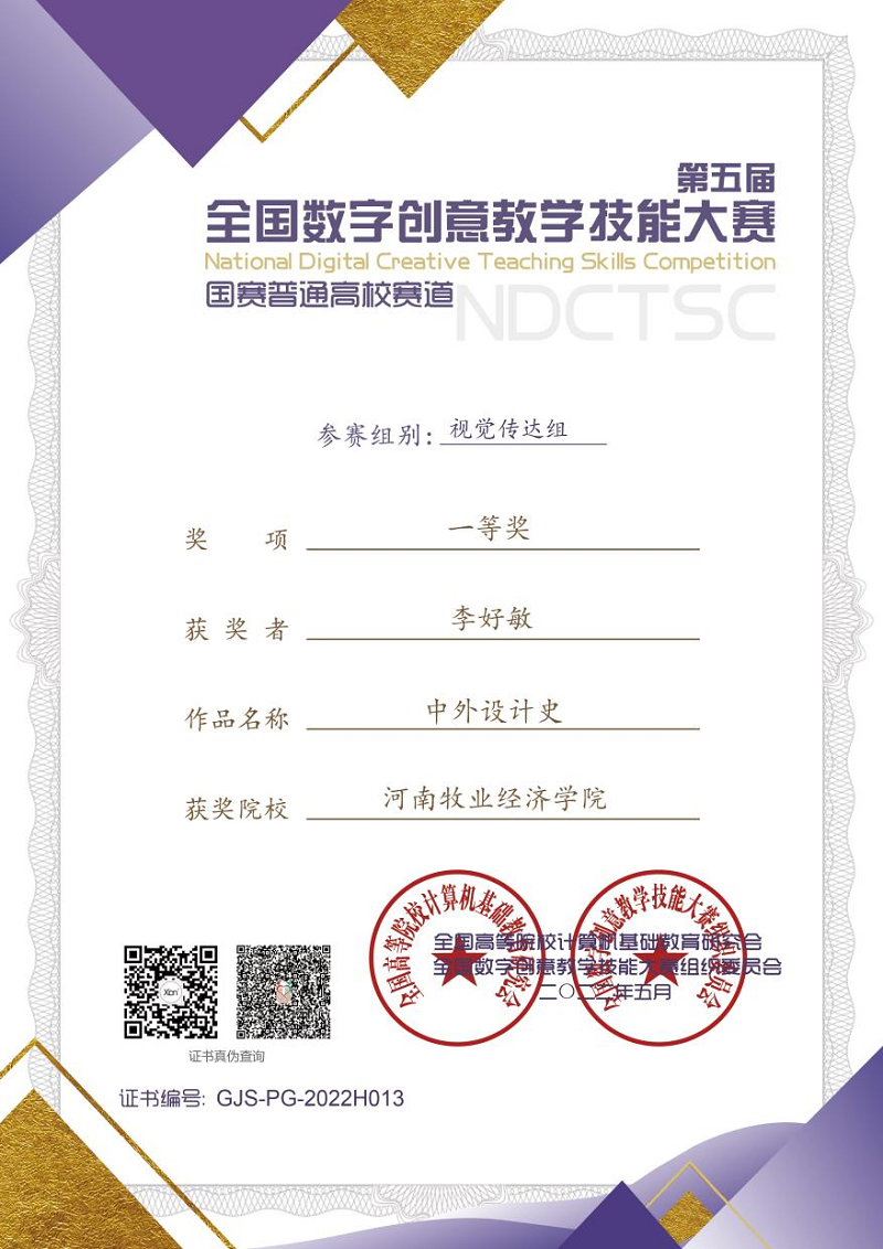 beat365官网教师李好敏在第五届全国数字创意教学技能大赛[普通高等院校赛道]中,获视觉传达设计组一等奖。据官方公示数据,第五届全国数字创意大赛共设立了30个分赛区共收到507所普通高等院校的3500余位教师的投稿作品,最终推荐898部优秀作品进入全国决赛。