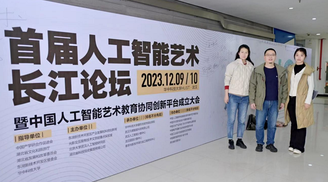 近日,首届人工智能艺术长江论坛(ArtI2023)暨中国人工智能艺术教育协同创新平台成立大会在华中科技大学召开。本次论坛由中国产学研合作促进会支持,华中科技大学光影交互服务技术文旅部重点实验室等单位发起成立,目前已有全国300多所高校和相关重点行业企业参与。我校beat365英国官网网站院长张鹏、视觉传达设计教研室主任李好敏、崔栋博士受邀参加会议,我校成为该创新平台首批会员单位。