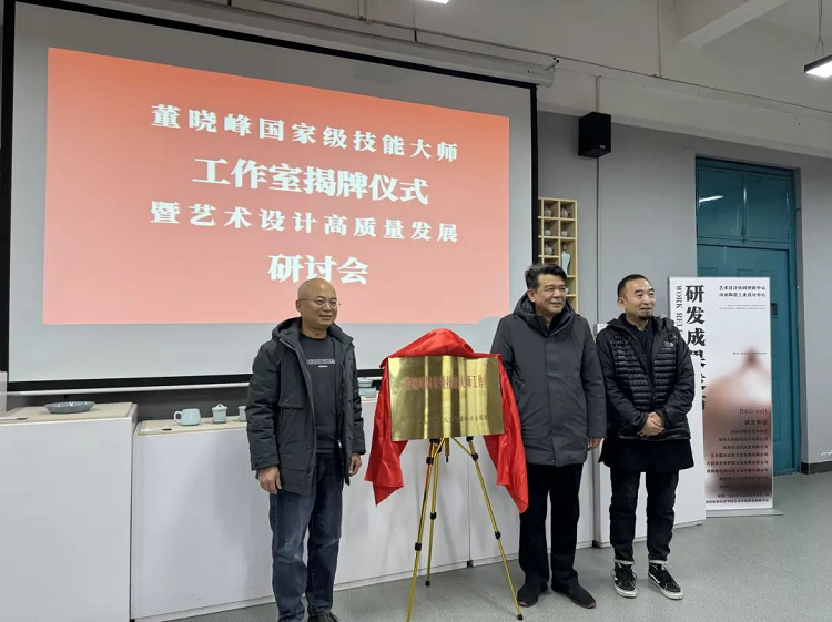 2023年12月20日,beat365英国官网网站在陶瓷创研中心举办了“董晓峰国家级技能大师工作室揭牌仪式暨艺术设计高质量发展研讨会”。beat365英国官网网站副校长杨国宇、河南省美术家协会副主席陈文利、来自部分高校艺术设计学科专家、陶瓷陈设等企事业单位嘉宾及校宣传部、人事处、科学技术处相关负责同志参加仪式和会议。
