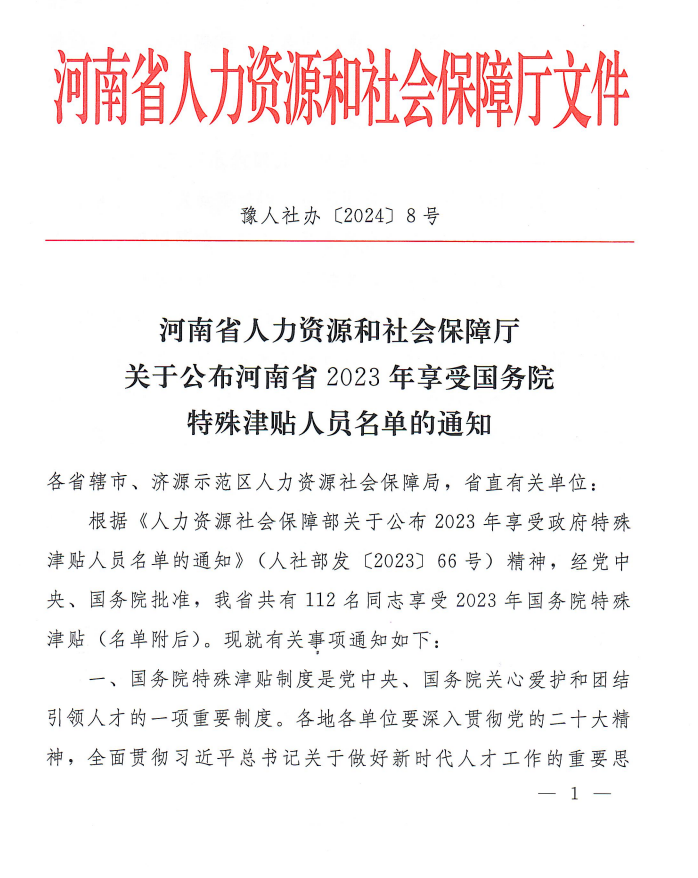 近日,河南省人社厅发布《关于公布河南省2023年享受国务院特殊津贴人员名单的的通知》,经逐级推荐、选拔,评审委员会评审和公示、考察,报经党中央、国务院批准,我校beat365英国官网网站董晓峰老师获批享受2023年国务院特殊津贴。