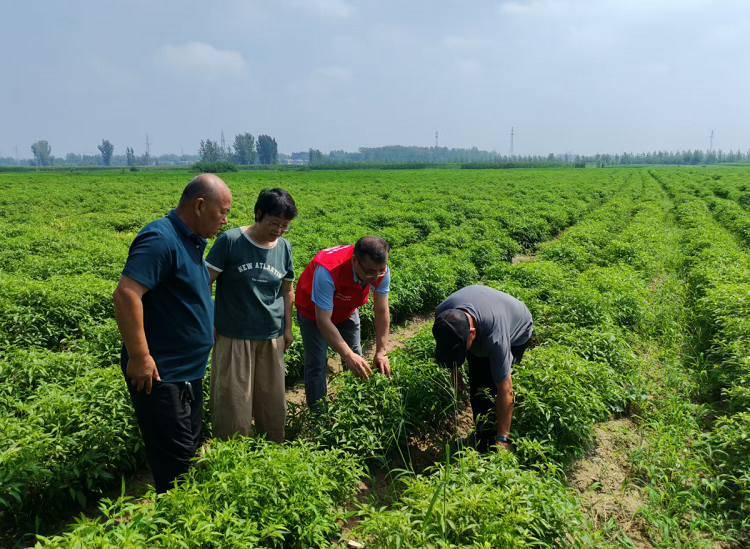 辣椒作为黄集村的主导经济作物,其生产效益直接影响农户增收。在实地考察中,宗建伟博士发现,尽管当地灌溉条件优越,但今夏持续性高温仍导致辣椒出现授粉障碍性落花落果、病毒病高发(表现为花叶、皱缩等典型症状)等生理性病害。针对上述问题,宗建伟博士提出系统性解决方案:一是优化灌溉模式,利用现有设施实施早晚微灌,配合腐殖酸水溶肥提升植株抗逆性,规避高温时段灌溉;二是科学应用植物生长调节剂,推荐喷施0.2%磷酸二氢钾与芸苔素内酯复配剂,以改善坐果率。杨雨华博士还从农业生态调控角度补充建议:“高温胁迫下可间作高秆作物形成微域遮阴,同时加强蚜虫、粉虱等害虫的绿色防控,从源头降低虫害传播风险。”