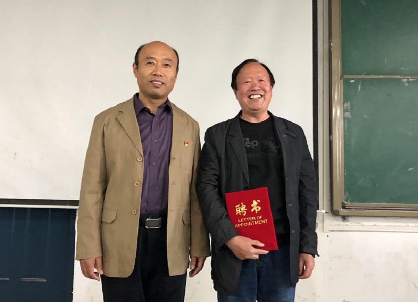 beat365英国官网网站党委书记王在钦向郑泰森先生颁发客座教授聘书。