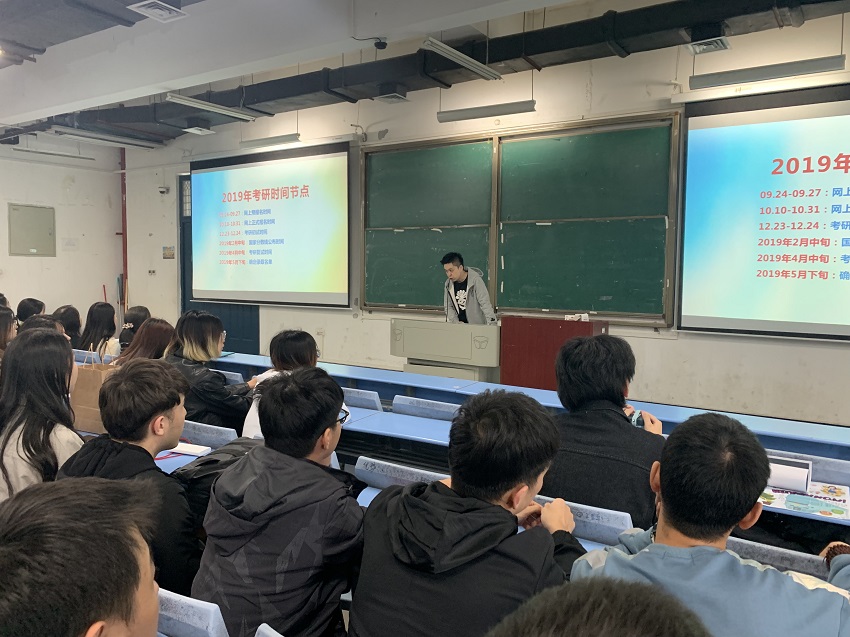 张莹老师主持了会议,为学生讲解了近年视觉传达设计专业的考研形式,目前学生是三年级,但对待考研要提前规划,并为如何报考提出了战略性意见。卞卡老师从为什么考研、如何选择学校和专业、如何进行备考等几个方面详细分析,介绍了考研的流程、规定、时间安排、资料收集和具体要求,以江南大学、郑州大学、郑州轻工业大学为例向学生从主要专业方向的出题侧重点为学生做了详细的分析。