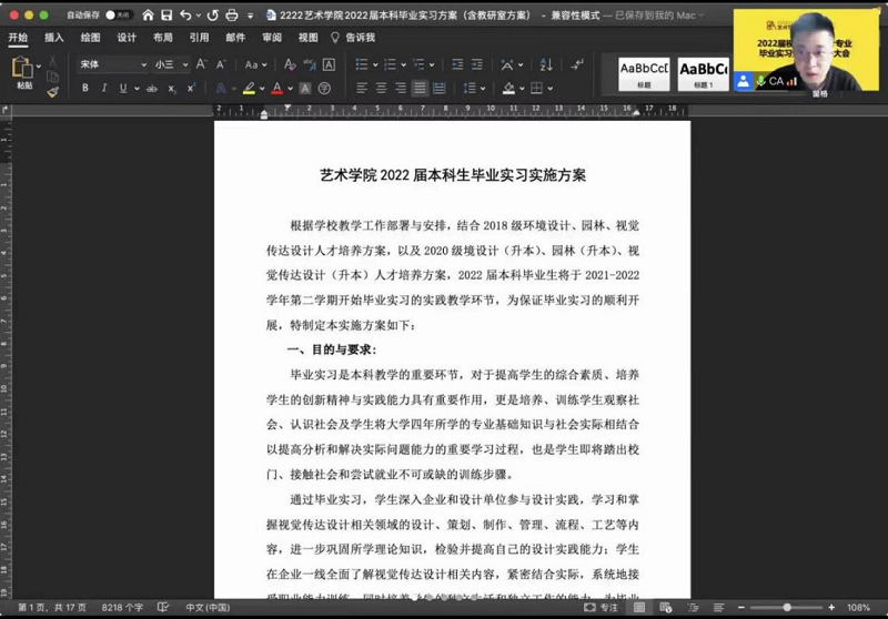 会议中,卞卡老师首先针对beat365英国官网网站2022届本科毕业生毕业实习实施方案、实习时间安排和实习方式、实习要求进行解读并详细部署,强调学生在教师指导下,根据实习大纲要求进行实习并及时向指导老师汇报。指导教师通过多种平台方式不定期对实习学生进行检查,强调了实习纪律。张莹老师系统地从为什么要实习、如何实习、实习效果三个维度完整地介绍了实习工作,包括实习的必要性、目的和意义,实习基本情况,实习注意事项等,让学生条理清晰地全面了解实习,并进一步明确了自己要做的准备工作。