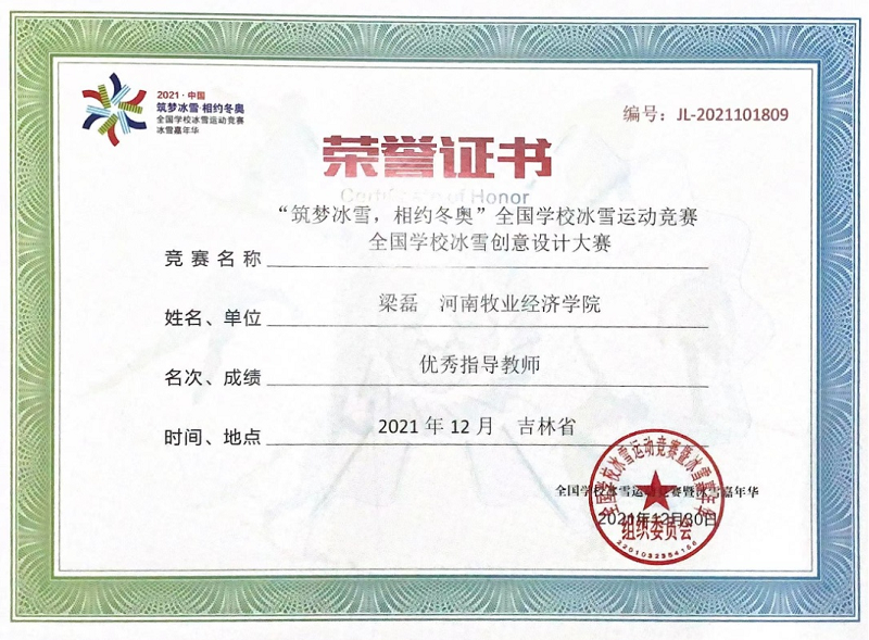 近日,由教育部、国家体育总局、北京冬奥组委和吉林省人民政府主办的第三届全国学校冰雪创意设计大赛圆满落下帷幕。我校beat365英国官网网站积极参与,经过专家评委会的初审、复审和终审,参赛作品喜获佳绩,荣获一等奖1项、三等奖1项,梁磊获“优秀指导教师”称号。