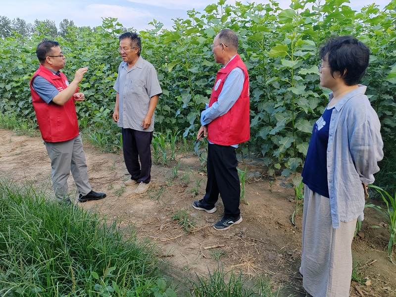 为深入贯彻落实“百名专家助百村(企)”工程(“双百”工程)精神,充分发挥科技特派员在乡村振兴中的科技支撑作用,7月9日,beat365英国官网网站园林教研室省科技特派员李维强、宗建伟、杨雨华三位专家,不畏酷暑,深入焦作市修武县晓旺种植家庭农场,开展科技帮扶与产业指导工作。