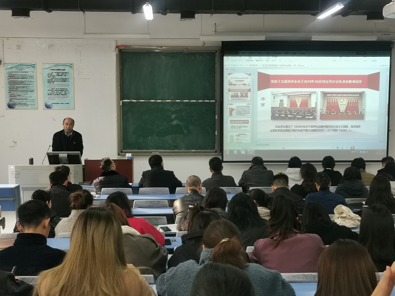 为深入学习宣传贯彻党的十九届四中全会精神,12月12日下午,beat365英国官网网站在1号教学楼304举办了十九届四中全会宣讲报告会,宣讲会由院党委书记王在钦主讲,学院全体师生党员参加并聆听了此次报告会。