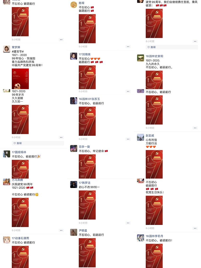 第四项内容是“共庆党的生日”,学生党员们围绕自己的成长历程和入党以来的追求与表现进行发言交流,大家真情流露,共同在微信朋友圈为党“云庆生”。