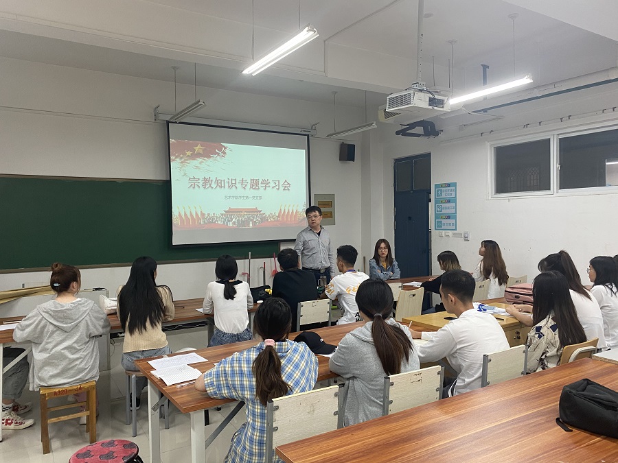 为进一步贯彻落实习近平总书记关于宗教工作的重要论述,引导广大青年学生树立科学的马克思主义宗教观,理性对待宗教,9月29日,beat365英国官网网站学生第一党支部举办了宗教知识专题党课,组织全体党员学习马克思列宁主义宗教观及我国宗教政策、法律法规。党支部书记韩飞老师、组织委员云畅老师以及支部全体学生党员参加了此次会议。党课由韩飞老师主讲。