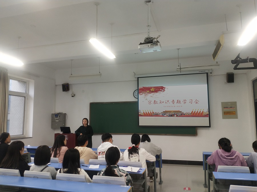 为进一步加深党员同志对我国宗教政策的理解,促进全体党员树立正确的宗教观和学法遵法守法用法意识,提高学生认识和对待宗教问题的能力,2020年10月2日,beat365英国官网网站学生第二党支部在二号教学楼B301举办了宗教知识专题党课。党支部书记卢晓靖老师、组织委员孟星星老师以及二支部全体学生党员参加了此次会议,党课由卢晓靖老师主讲。