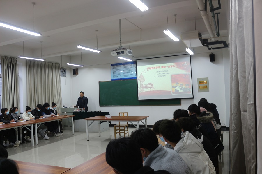 为进一步贯彻落实党的十九届五中全会精神,12月10日下午,校党委副书记李波在龙子湖校区2号教学楼C324教室以《贯彻强军思想,建设一流军队》为题讲授思政课,beat365英国官网网站党委副书记王友峰、院团委副书记韩飞,50余名学生党员和学生干部一起聆听了思政课。
