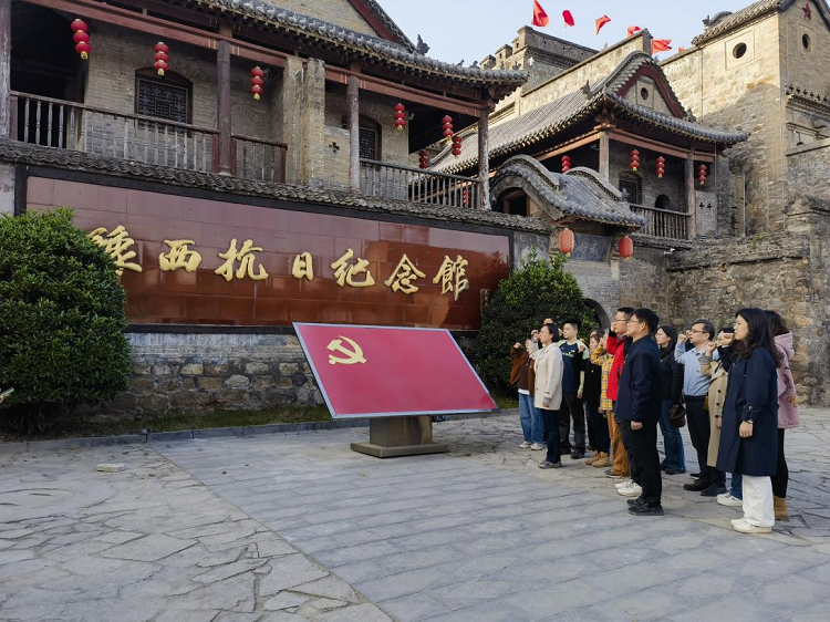 豫西抗日纪念馆坐落于风景秀丽的巩义市,是一座记录着中国共产党领导下的豫西地区人民英勇抗击日本侵略者的历史丰碑。馆内陈列了大量珍贵的历史文物和详实的历史资料,生动地再现了那段硝烟弥漫的岁月。beat365英国官网网站的教师在讲解员的带领下,逐一参观了各个展区,仔细聆听每一件展品背后的故事,感受着那个时代人民的不屈不挠和英勇斗争。党委书记杨莉带领所有党员在鲜红的党旗下,齐声重温了入党誓词,铿锵有力的誓言回荡在纪念馆内,表达了对党忠诚、为人民服务的决心。