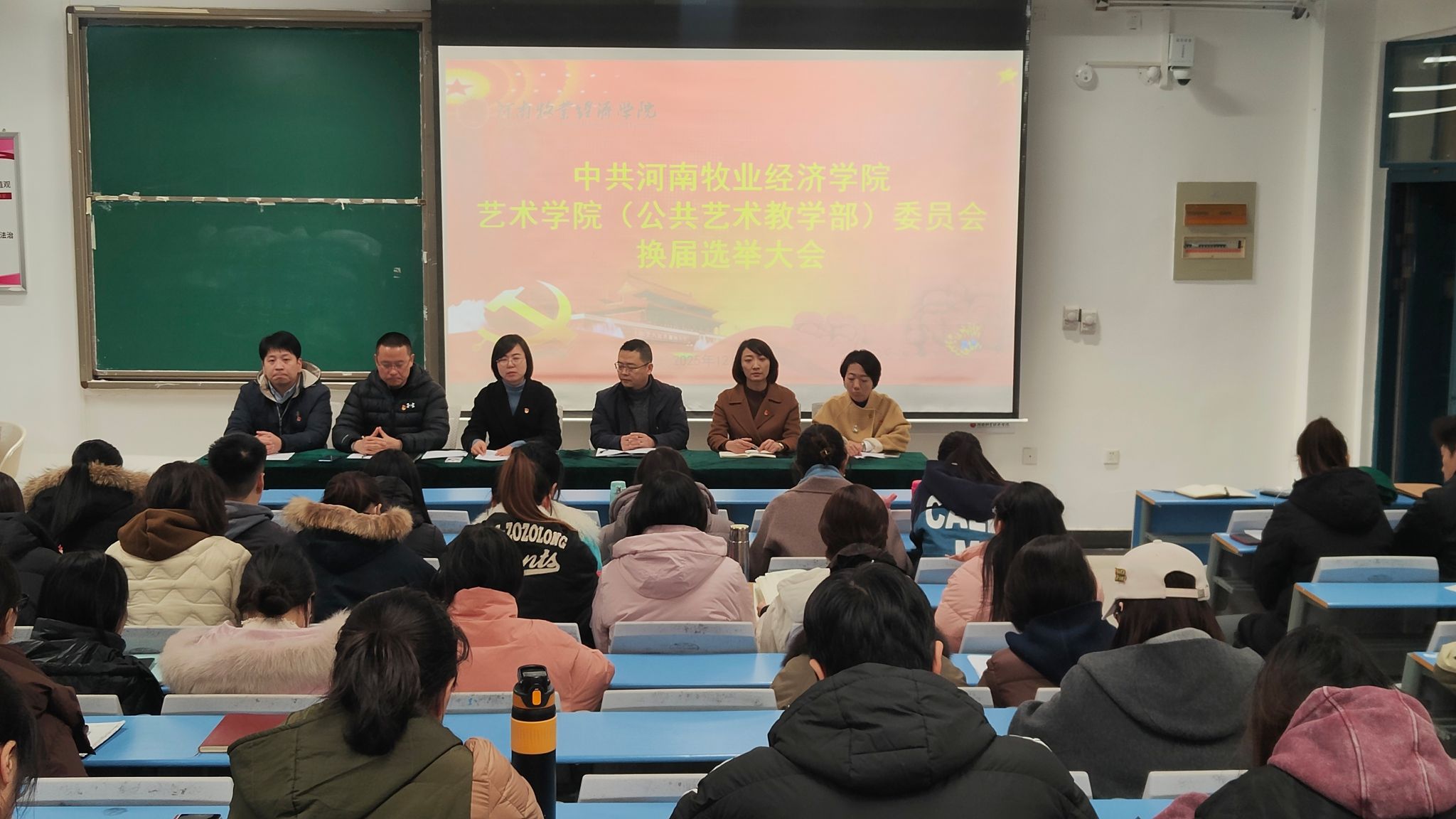 根据校党委《关于做好基层党组织换届选举工作的通知》(校党〔2025〕88号)要求,2025年12月30日,中共beat365英国官网网站beat365英国官网网站(公共艺术教学部)委员会党员大会在龙子湖校区一号教学楼304教室隆重召开。学院领导班子成员及全体师生党员参加会议,大会由院党委书记杨莉同志主持。