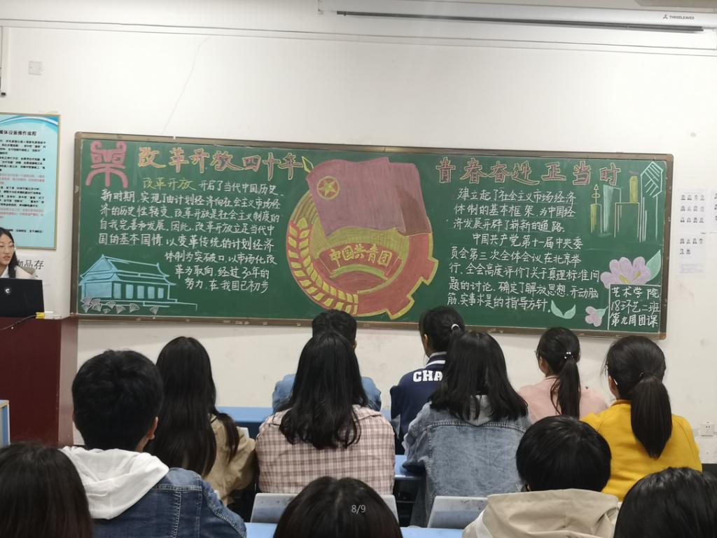 此次团课,号召广大团员青年以实际行动学习、宣传改革开放四十年来祖国取得的伟大成就,进一步提高团员青年的政治素质,培养远大、品德高尚、视野开阔的新时代青年团员。本次团课的召开,也让同学们切身感受我国从“赶上时代”到“引领时代”的伟大跨越,更要牢记党的贡献,珍惜现在的美好生活。同时也让同学们共同携手书写国家和青年发展的历史新篇。通过学习参考视频、征文演讲——《两个一百年》等形式展现改革开放四十年砥砺奋进的新情怀,加大了同学们对国家青年发展的热衷。同学们积极踊跃发言,吐露了自己对祖国和未来的美好祝愿。