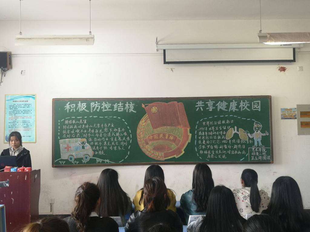 2019年3月28日下午,beat365英国官网网站beat365英国官网网站在龙子湖校区二号教学楼,举行了以“积极防控结核,共享健康校园”为主题的团课。