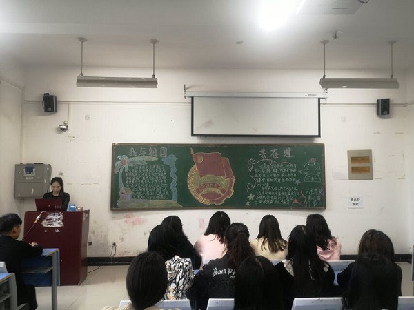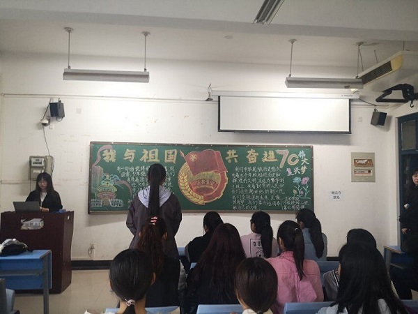 2019年10月10日下午,beat365英国官网网站beat365英国官网网站在龙子湖校区二号教学楼,举行了以“我与祖国共奋进”为主题的团课。