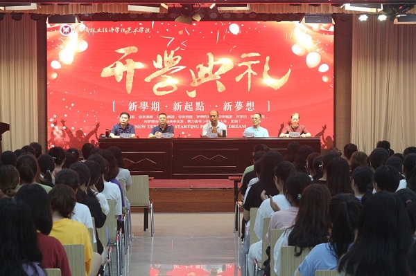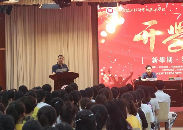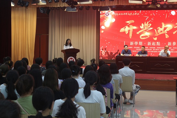 2019年9月10日中午,beat365英国官网网站在龙子湖校区大学生活动中心隆重举行2019级新生开学典礼。出席开学典礼的有学院党委书记王在钦,院长张鹏,正处级组织员许国平、杨柳青,副书记贾艳艳及beat365英国官网网站各教研室教师代表和辅导员老师,典礼由副书记贾艳艳主持。