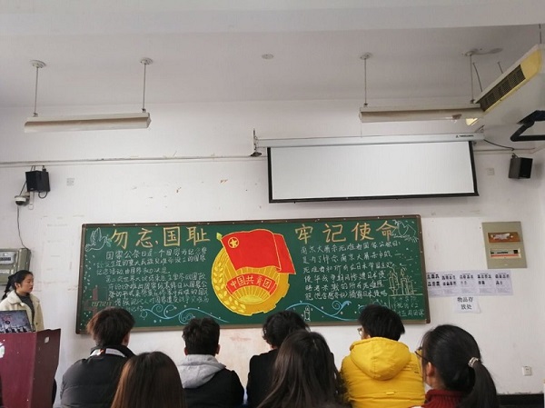 2019年12月12日,beat365英国官网网站beat365英国官网网站在龙子湖校区二号楼,举行了以“国家公祭日”为主题的团课。本次团课,由大一全体同学参加。
