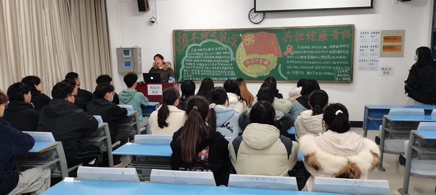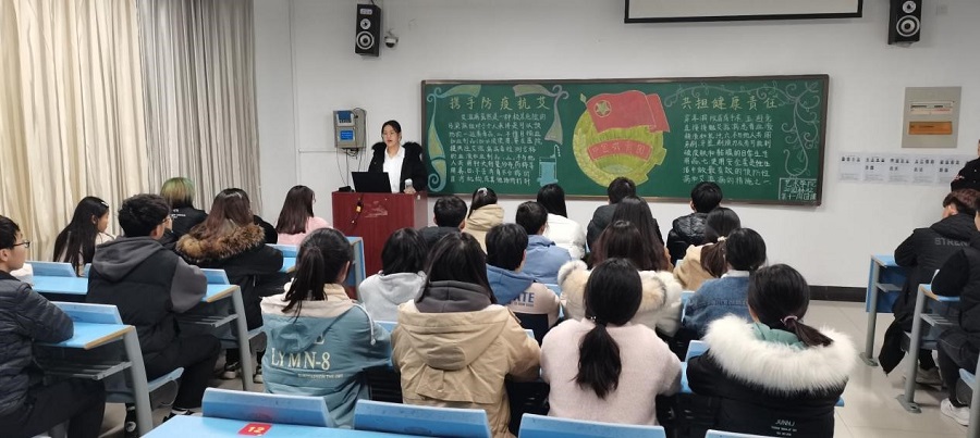 2020年12月04日晚上19:30—20:30,beat365英国官网网站beat365英国官网网站在龙子湖校区二号教学楼举行了以“携手防疫抗艾 共担健康责任”为主题的团课班会,本次团课,由大一全体班级参加。