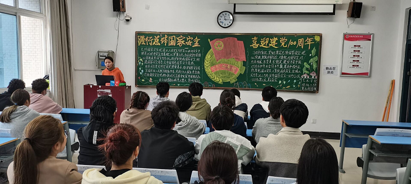2021年4月8号下午,beat365英国官网网站beat365英国官网网站在龙子湖校区二号楼举行了以“践行总体国家安全,喜迎建党100周年”为主题的团课,本次团课由大一全体班级参加。