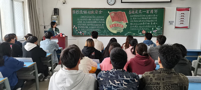 在团课上,各班团支书带领同学们认真学习了总体国家安全观。国家安全是安邦定国的重要基石,以及维护国家安全的重要性。同学们认真学习,并纷纷表示国家安全应该深入每个人的心中。今年又是建党一百周年,同学们都感到非常荣幸能够见证党的一百周年并且参与其中。这一百年来的奋斗波澜壮阔,党带领人民取得的成果令人惊叹。这一百年来,中国共产党人初心不变,带领中国人民谋幸福,为中华民族谋复兴。特别是在疫情防控常态化的现状下,同学们表示在这个关键时候,我们更应该坚持健康检测,注意个人卫生,让疫情防控成为常态化。
