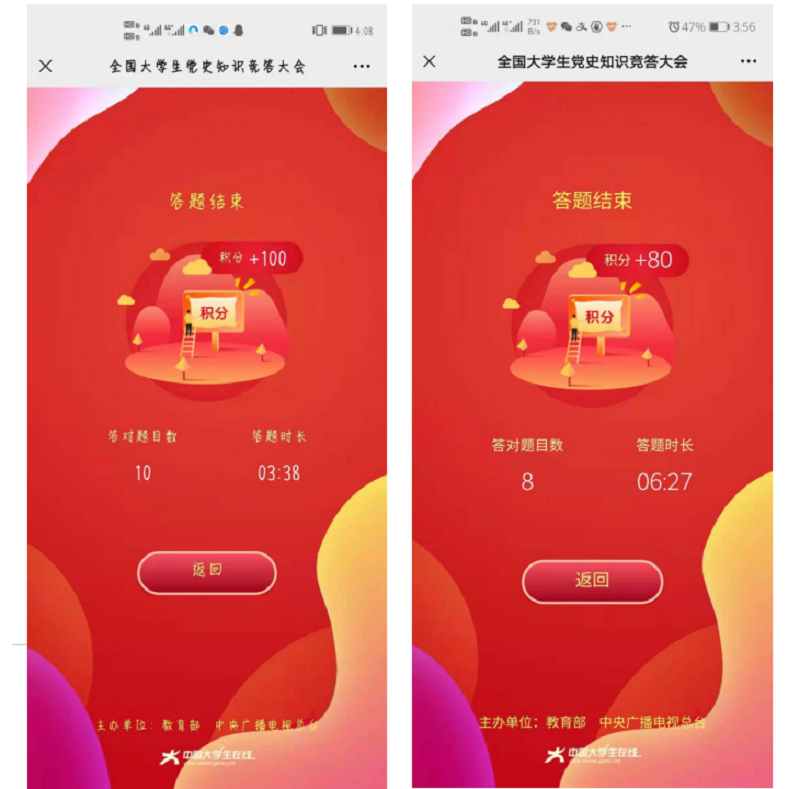 自3月22日起,beat365官网学生积极参与云答题。尤其是学生党员、预备党员以及入党积极分子,从全方位了解共产党员、了解共产党究竟为祖国的建设所做出的贡献,加深爱国主义情感教育,进一步培养同学们的团结合作精神,培养同学们的责任感,彼此之间扬长避短、相互学习。