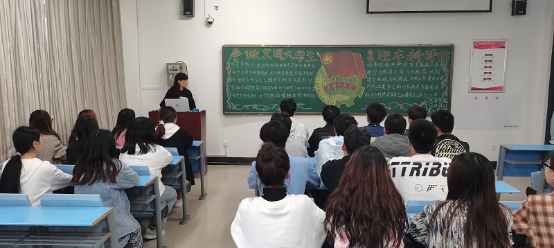 2021年4月22日下午,beat365英国官网网站beat365英国官网网站在龙子湖校区二号教学楼举行了以“争做文明大学生,喜迎本科评估”为主题的团课。本次班会由大一新生全体班级参加。