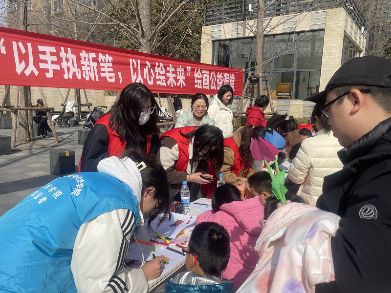 在第61个“学雷锋纪念日”到来之际,2024年3月3日上午,beat365英国官网网站组织学生青年志愿者走进五月花城社区开展“以手执新笔,以心绘未来”主题绘画公益课堂活动,利用专业优势,充分发挥自己的绘画特长,热心教授小朋友绘画技巧,以实际行动践行雷锋精神。
