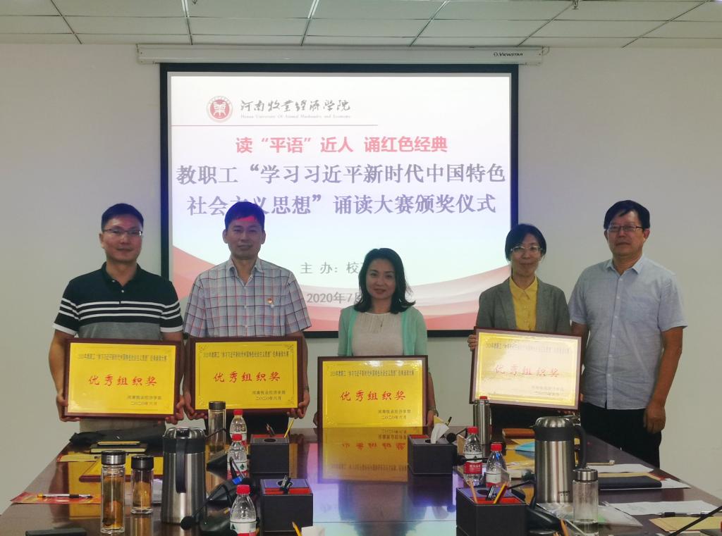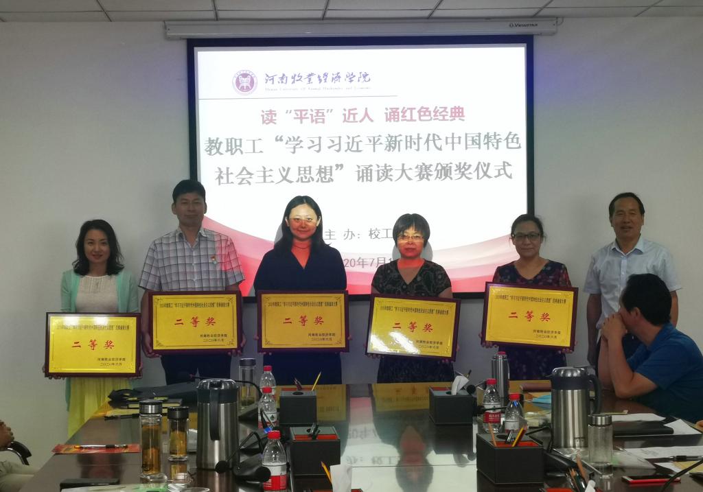 根据中共河南省委宣传部、河南省总工会《关于开展河南省职工“学习习近平新时代中国特色社会主义思想”经典诵读活动的通知》(豫工文〔2020〕13 号)文件精神,beat365英国官网网站分工会在全体教职工中广泛宣传,组织大家积极参与,共向校工会推荐报送了9件诵读视频作品。经过专家组集中观看、认真评审,beat365英国官网网站分工会谭寅峰老师的《祖国啊,我亲爱的祖国》荣获二等奖,陈胜蓝老师的《黄河畅想》、韩飞、王霜老师合作的《念奴娇·追思焦裕禄》以及园林教研室集体创作的《人不负青山青山定不负人》等荣获三等奖。beat365英国官网网站分工会荣获优秀组织奖。