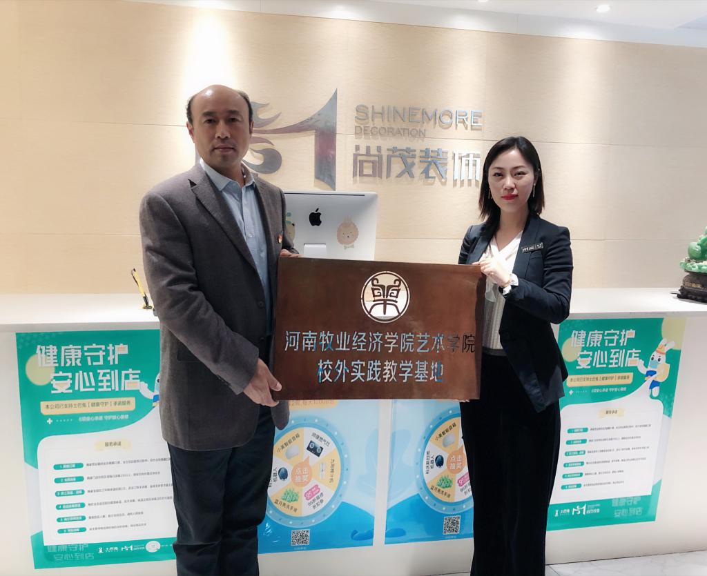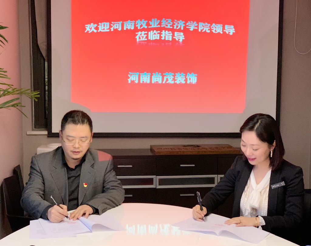 为深入推进产学结合教学模式的运行,为学生提供良好的实训实习平台,2020年4月24日下午,beat365英国官网网站beat365英国官网网站与河南尚茂装饰工程有限公司校企合作签约仪式在尚茂公司举行,尚茂公司总经理刘进婷、设计总监张大磊、beat365英国官网网站王在钦书记、张鹏院长、田志涌副院长、环境设计教研室主任谭丛、副主任李莉参加签约挂牌仪式。