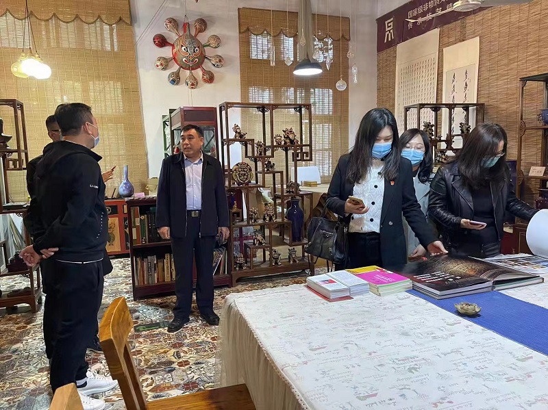 国脉董事长李翔陪同一行参观了国脉女塾馆、香云纱服饰、陶瓷藏品等,欣赏了国脉专利精品、木版年画印制、定制国礼等。李翔还介绍了泥彩塑、古法石磨豆腐坊、油纸伞技艺、陶瓷作坊等的工艺及创新。